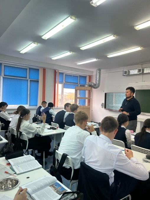 2025 жыл 26 қыркүйек күні “Жас педагогтер мектебі” шеңберінде тәлімгерлердің берген теориялық білімдері практика жүзінде көрсетілді. Олжас Амангельдыевич 10-сыныпта тарих сабағын өткізіп, жаңа тақырыпты оқушыға жеткізу және бекіту сияқты әдіс-тәсілімен бөлісті
