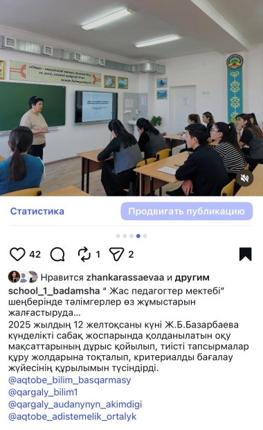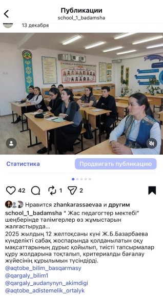 2025 жылдың 12 желтоқсаны күні Ж.Б.Базарбаева күнделікті сабақ жоспарында қолданылатын оқу мақсаттарының дұрыс қойылып, тиісті тапсырмалар құру жолдарына тоқталып, критериалды бағалау жүйесінің құрылымын түсіндірді.