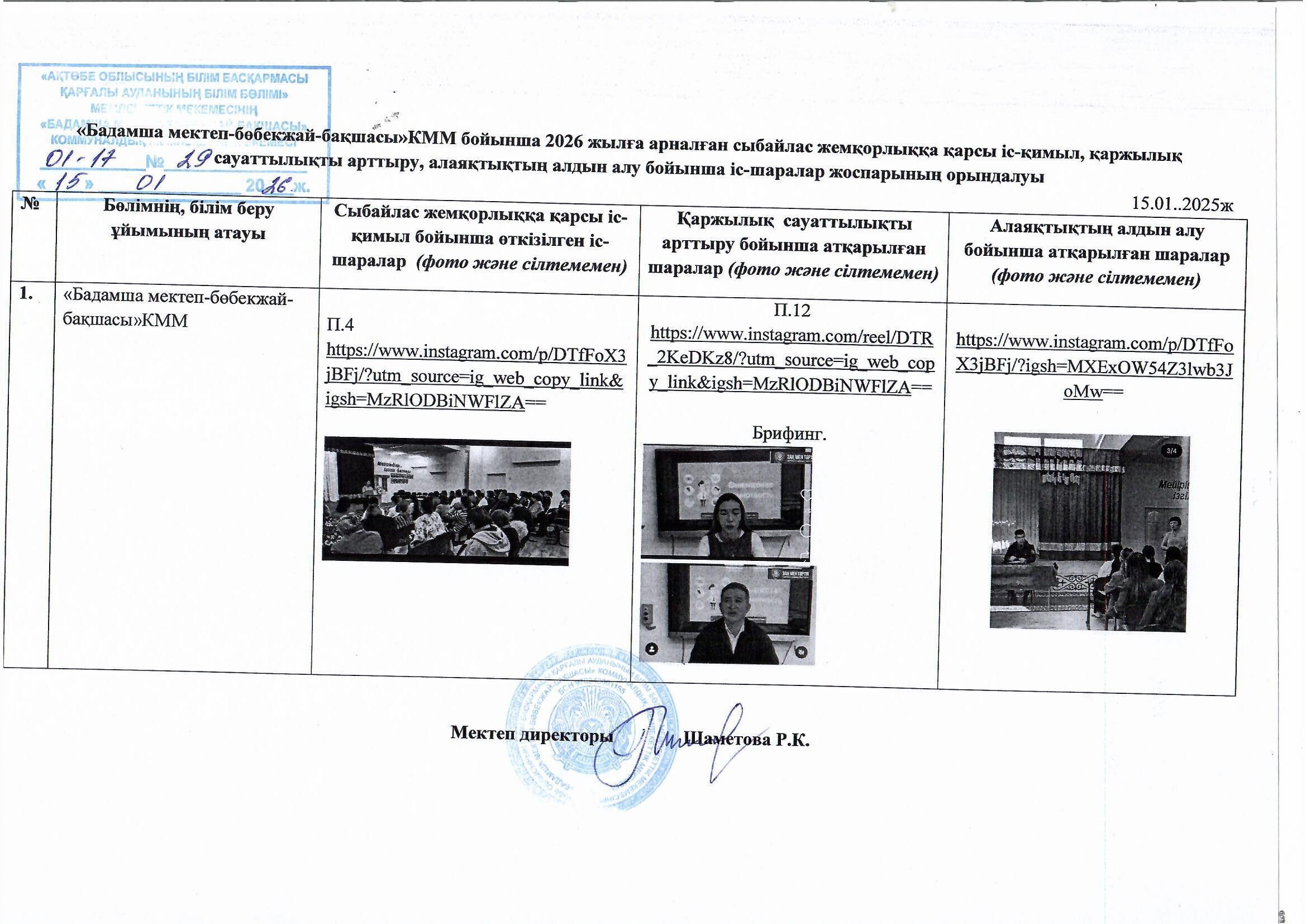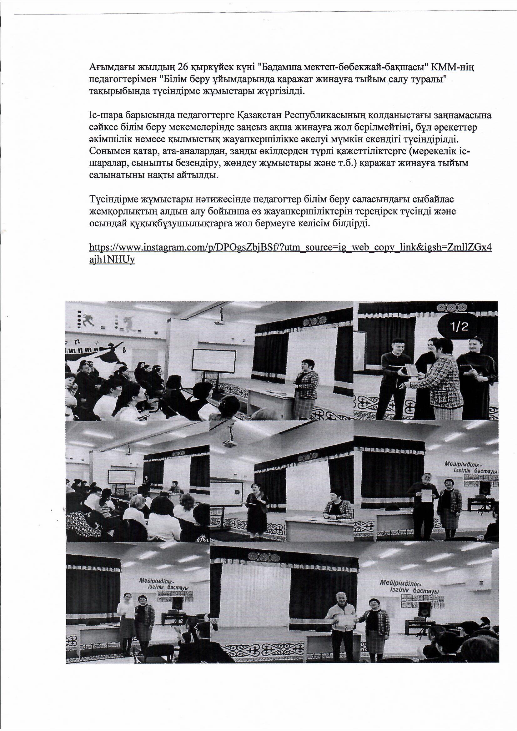 "Ақтөбе облысы білім басқармасының Қарғалы ауданының білім бөлімі " ММ "Бадамша мектеп- бөбекжай-бақшасы" КММ