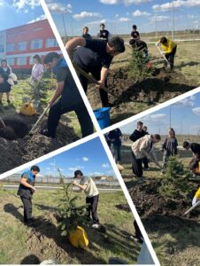 «Таза Қазақстан» республикалық екі айлық экологиялық акциясы аясында мектеп ауласына шырша отырғызылды