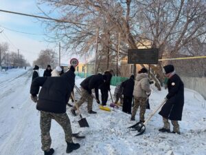 «Қоғамға қызмет» еріктілер клубының мүшелері әскери-патриоттық тәрбие онкүндігінің аясында волонтерлық қызмет атқарды.